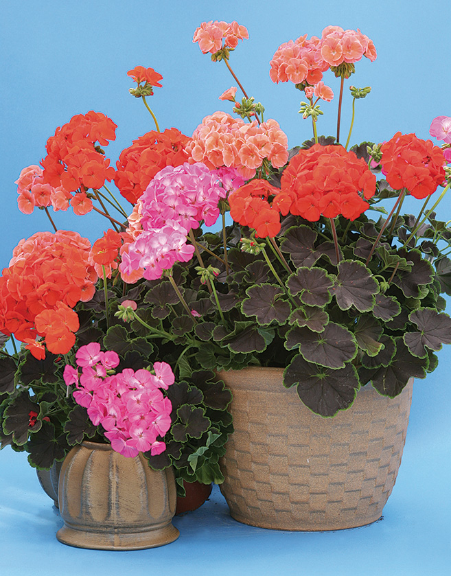These unique varieties from the “Darky F1” series are characterised by their highly decorative brown leaves with a green border. The dark leaves are very effective in white pots. They can be used in countless horticultural compositions or in combination with green-leaved varieties.